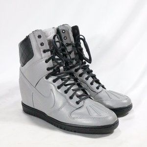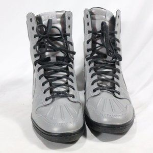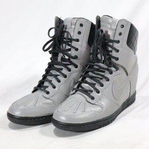 Stylish high-top sneakers. Sleek gray with black accents. Perfect for casual wear.