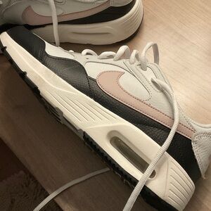 Stylish Nike women's sneakers. Sleek design with black accents. I barely wore these, as I just found they’re a little snug on me. I do wear a size 10 shoe, but I don’t like snug fit. Didn’t feel that they were when I bought them, but I’m just not willing to break them in and the time has passed for me to return them.