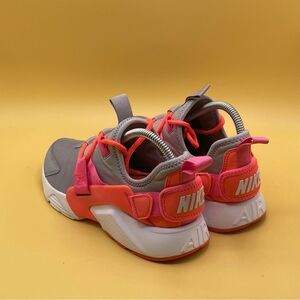 Stylish Nike sneakers with a modern design. Features a gray mesh upper with vibrant pink accents. Comfortable and trendy for everyday wear.