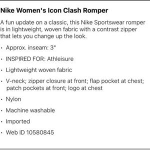 Nike Women’s Sportswear Icon Clash Romper desert orange lemon venom Size S