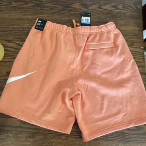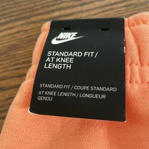 3 pockets-2 side and one back snap pocket. Standard fit/knee length. Elevate your activewear game with these Nike Women's Sweat Shorts in eye-catching orange. Made from a soft and fuzzy knit fabric blend of polyester and cotton, these knee-length shorts offer ultimate comfort during any performance or activity. The drawstring feature allows for a personalized fit, while the knit fabric type adds a unique touch to your activewear collection. These shorts are perfect for any occasion, whether it's a workout session or a casual day out. Available in size XL with a waist size of 34 inches when unstretched, these shorts cater to a range of sizes. Add a pop of color to your wardrobe with these Nike Women's Sweat Shorts.