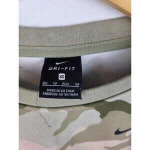 Nike Women's Sweatshirt Size XS Green Camouflage Dri-Fit Cropped Top Long Sleeve
