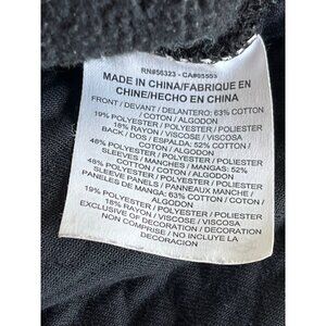 Nike Woman's Sportwear Rally Crew Sweatshirt in black. Sweatshirt is a long sleeve pullover with a plain front and textured sleeves and back. It’s shorter in the front and longer in the back. Sweatshirt is made of a cotton, poly, rayon blend and is a woman's size medium. Style #841645-010.