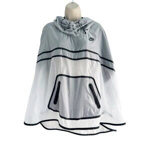 Nike Women's Hyperfuse Tech Poncho Hoody Lightweight Semi-Clear. It's made of 100% nylon and is a woman's size medium.