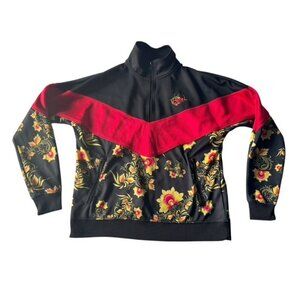 Nike Russian Khohlama Flower Windbreaker Jacket. Jacket is red and black and done in a vibrant floral pattern. It's made of 100% polyester and is a woman's size small. Jacket is rare.
