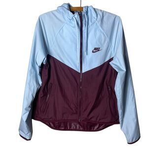 Nike Women’s Sz XS Windrunner Colorblock Hooded Jacket Light Blue Maroon