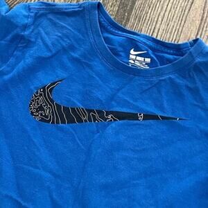 Nike Womens T-Shirt Athletic Cut Short Sleeve Swoosh Logo Print Blue Size XL