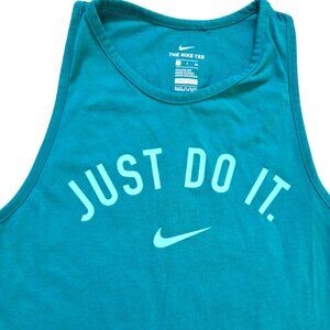 A great Nike dri fit workout tank top! It's a nice blue color and features the saying 'Just Do It'. Perfect for your workouts or just running errands and chores.