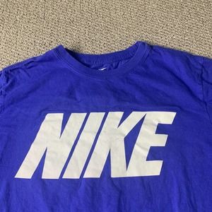 Nike Womens Tee Shirt Size Medium Blue Spell Out Short Sleeves Pullover Swoosh