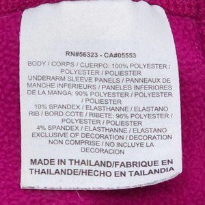The perfect light sweatshirt for exercising outside, fully lined with a thin fleece layer. Featuring a full hood and front pocket. There is a very light stain on the right stomach area of the sweater. There are also some nail polish stains on the cuff of the right sleeve. See pics. Otherwise, there are no rips or stains and in good condition.