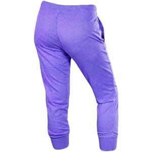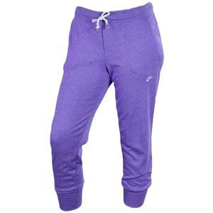 Keep comfy in Nike's ultra cute capri sweatpants! Easy style while you're on the move or lounging at home. Mid rise: approx. 9 inches. Slim fit through hips and thighs. Cropped below knee; banded hem. Pull-on style; self-tie drawstring at waist. Off-seam pockets at hips. Embroidered logo at left thigh.