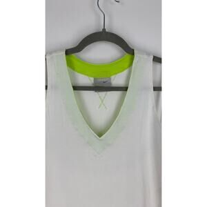 Nike Women's Top Sleeveless V-Neck Embroidered Logo White Green Size Large