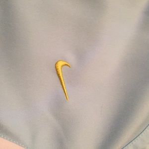 Preowned Women's NIKE track jacket, size Medium ...Old style track jacket..2 hand pockets with zipper..Aqua with white and yellow stripe accent color..Small pull on left sleeve cuff, as noted in last pic (barely noticeable)..EUC..no stains, holes