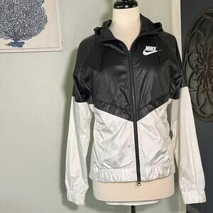 Chic and functional design. Black and white color scheme. Ideal for versatile wear. Rain and wind SHELL, with vents in all the right places. Lower in the back for bum coverage! Light and pack able.
