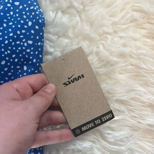 New with tags Nike Women's Water Dots Keyhole Back One Piece Swimsuit Pacific Blue Size Small.