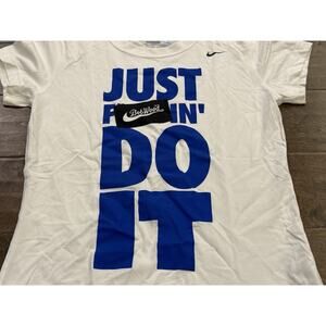 Nike Womens White Bob Wood 80 Just Do It Short Sleeve T-Shirt Size S 405712-100