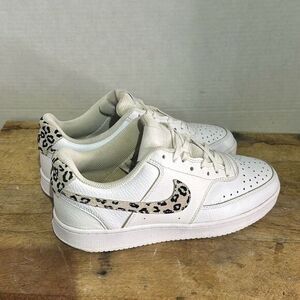 Nike Womens White Court Vision Low 'Leopard Swoosh Sneakers Size 8