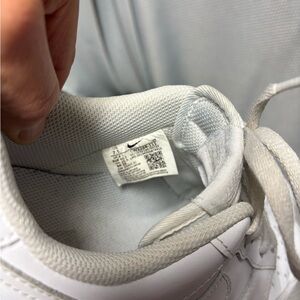 Step out in style with these classic white Nike sneakers. Perfect for any casual outfit, these shoes offer both comfort and a timeless look.
