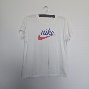 Nike women's white t-shirt. Featuring a classic design, it's perfect for everyday wear.