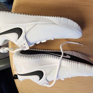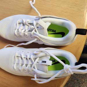 Stylish white sneakers with iconic black swoosh. Lightweight and versatile. Ideal for active and casual use.