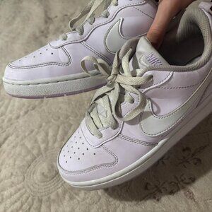 purple and white Nikes🤍 worn a couple times. If you wash the laces they’ll look good as new! Bought for 80$ lost the box some how.