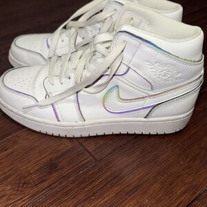 Nike Women's White Air Jordan Reflective Nike Mid Irresident Trim Size 8