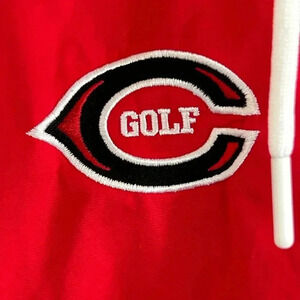 Color block Windrunner jacket in red, gray, and white. The zipper has some white coming off on the end but other than that excellent condition. Very soft taffeta like material.See all extra details below before purchase!