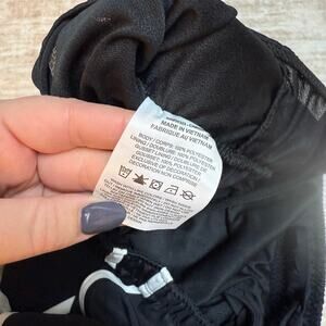 Nike Women’s XL Black White Stripe Dri Fit Running Shorts Lined Athletic New. Inner liner. Elastic waistband with drawstring. Small inner pocket. New with tags.