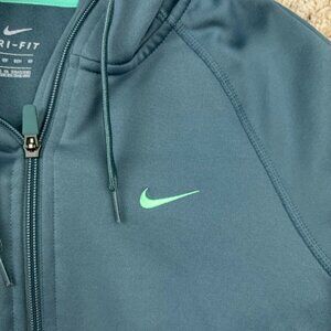 Nike Women's XS Full Zip Fleece Lined Green Blue Gray Hooded Jacket W Pockets
