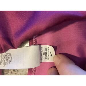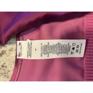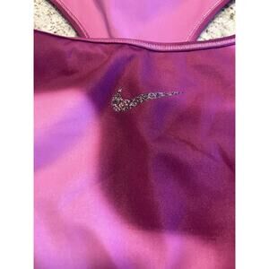 This is a Nike Women's Yoga Dri-FIT Swoosh Sports Training Bra in Plus size 3X. It features a solid pink color with a racerback strap style and medium support. Made of polyester and spandex, this sports bra is fitted and padded, suitable for various activities like yoga, running, and weightlifting. The Nike Dri-FIT technology ensures comfort and performance during workouts.