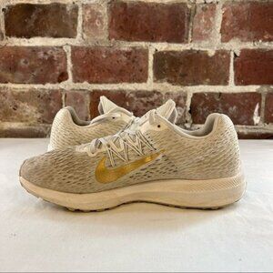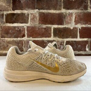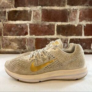 Nike Women's Zoom Winflo 5 'String' Athletic Sneakers in Cream Gold, size 10, offer a blend of style, comfort, and durability. Perfect for active women with a taste for fashion.