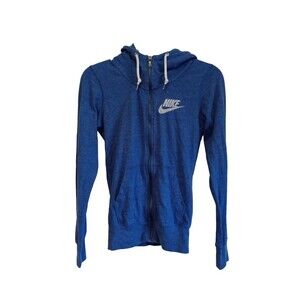 Nike Women's blue speckle long sleeve full zip hooded draw string sweater. Good condition. Size XS