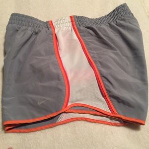 Nike running shorts with built in undergarment, drawstring for better fit and small pocket inside. Super comfortable, light weight and in excellent condition. No fading and piling. Well taken cared for. Washed in cold water and hang dry. Pictures are front, back, side and close up of tag info.