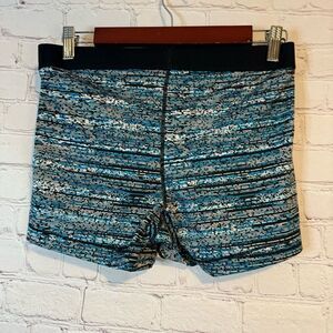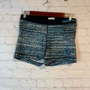 Experience comfort and style with Nike women's shorts in a striking black and blue pattern. Perfect for workouts or casual wear.