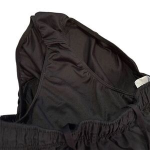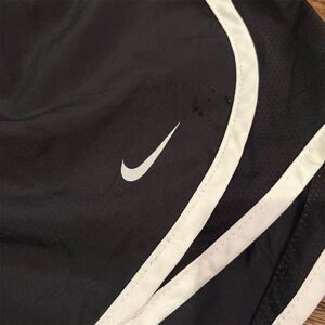 This Nike Biker shorts for women come in a size XS and feature a regular fit. Made from lightweight, breathable fabric with Dri-FIT technology, they are ideal for running and gym activities. The shorts are black with an elastic waistband, drawstring closure, built-in briefs, and a curved hem. The Nike Swoosh logo is prominently displayed. They are machine washable and pre-owned.