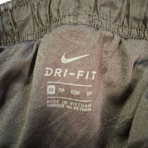 This Nike women's sweat in size XS is designed for activewear, ideal for running and training. It features a solid black color and is made from lightweight, breathable polyester with Dri-FIT technology. The regular fit includes a drawstring closure and logo accents. Suitable for summer, it is machine washable and manufactured in Vietnam. The item is pre-owned.