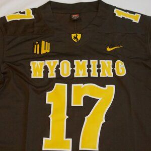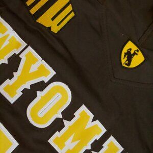 Support your team with this Nike Wyoming jersey. Bold black with gold accents. Ideal for fans and casual wear.