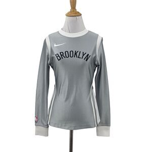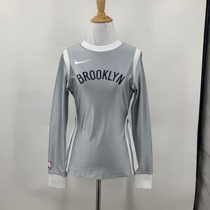 NIKE X AMBUSH NRG TOP WOMENS S SMALL SILVER SLIM FIT SLEEVE INSET BROOKLET NETS