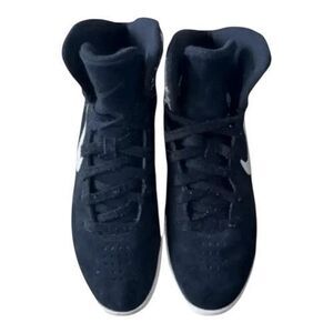 The Nike X Hyperclave Lite Liberty of London Hyperdunk Black Floral Shoes in women's size 9.5 are a stylish and comfortable pair of athletic sneakers perfect for activewear. Featuring a multicolor floral pattern, these high-top sneakers have a synthetic exterior and lining, with a rubber outsole for durability. With the iconic Nike logo accents and a tie closure, these shoes are both fashionable and functional, suitable for walking, baseball, and various other activities in the spring, summer, and fall seasons. Made by Nike in 2012, these sneakers offer a blend of style and performance for any active woman.