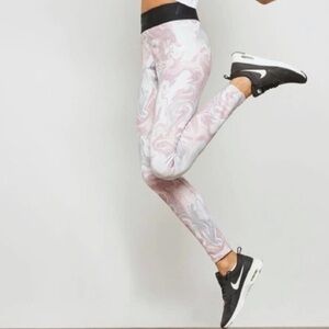Nike XS Leg-A-See High Waisted Running Tights Leggings Pink Marble Spellout