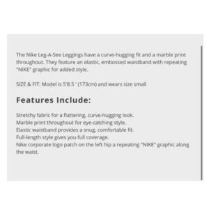 Nike. XS. Marble print leggings with spellout waistband. Waist 10.5” rise 10.5” inseam 26.5.” Excellent condition, no flaws. X
