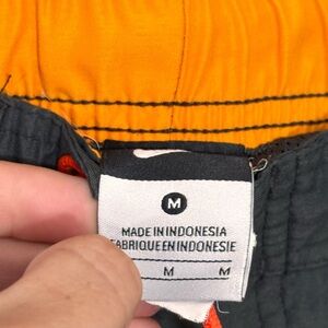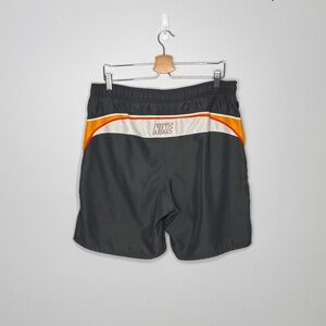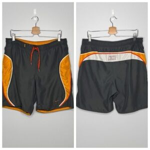 Nike Swim Trunks Mens Medium Shorts Mesh Lined Gray Orange Zip Pocket Drawstring