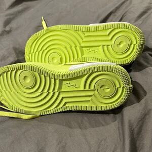 Step out in style with these Nike sneakers, featuring a vibrant yellow hue that commands attention. The classic Air Force 1 silhouette is enhanced with a perforated toe box and a semi-transparent Air sole unit for added comfort and flair. Crafted with a glossy leather finish, these sneakers offer a bold, monochromatic look perfect for any sneaker enthusiast.