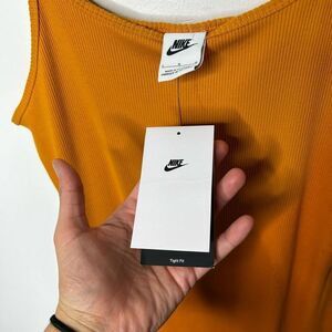 Nike Yellow Tan Ribbed Mini Tank Dress Size L Tight Fit Athletic Athleisure Gym