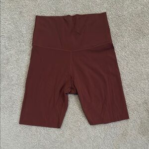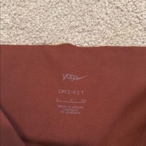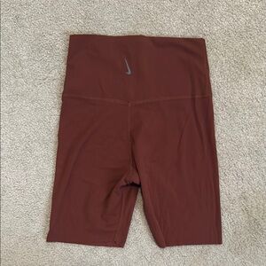 Comfortable Nike yoga shorts in a warm rust shade. Ideal for yoga or casual outings.