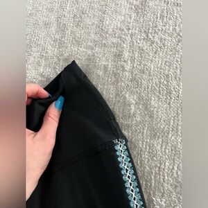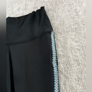 Chic appeal meets functionality with this pair of leggings that features crochet detailed side seams.