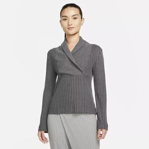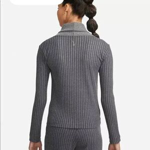 Nike Yoga Sweater Women's Size Large Gray Luxe Ribbed Long Sleeve Sweater