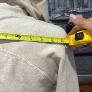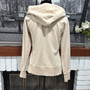Nike Yoga Women Ivory Beige Asymmetrical Hooded Long Jacket Large Stretch Cotton