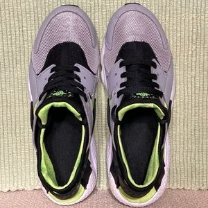 Nike Youth/Big Kids Air Huarache Run Gray Running Sneakers Shoes. Color: Grey/Volt Green. Pre-Owned Condition - refer to pictures for description of shoes. No Rips or Tears. Smoke-Free.