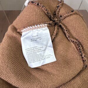 Nike Youth Cheetah Print Beanie Brown w/ Gold Swoosh & Black Pom – Winter Hat